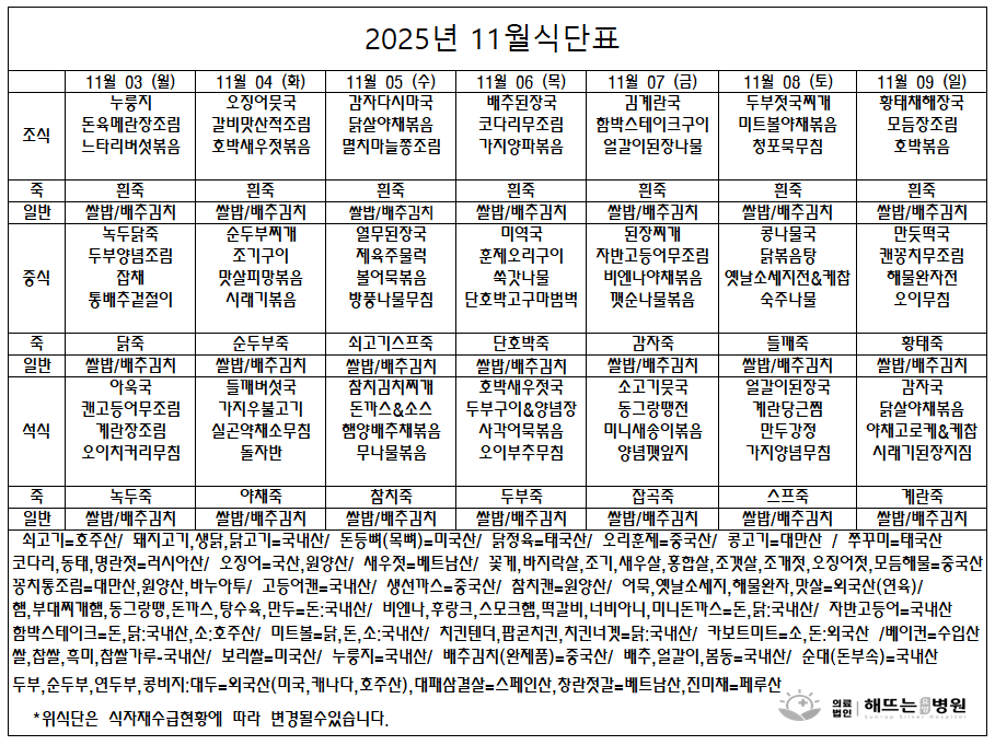 "매일 해뜨는 요양병원에서 제공되는 식단입니다"
