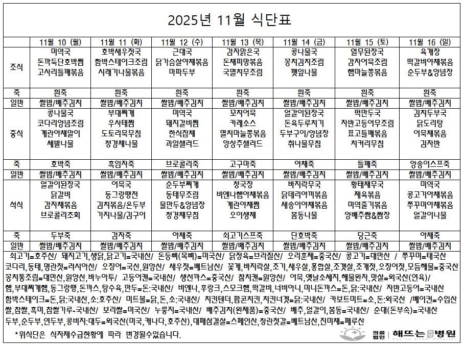 "매일 해뜨는 요양병원에서 제공되는 식단입니다"