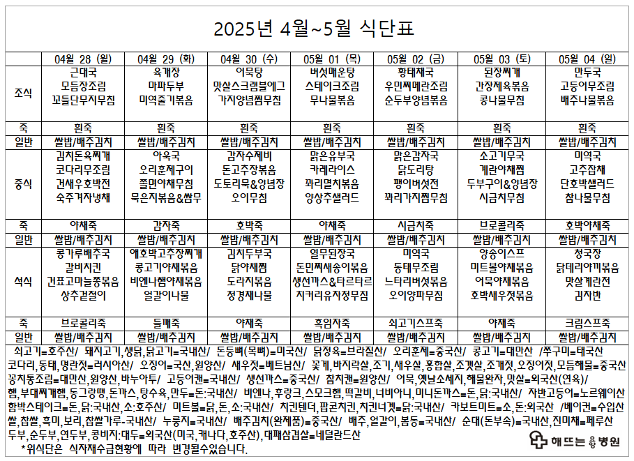 "매일 해뜨는 요양병원에서 제공되는 식단입니다"