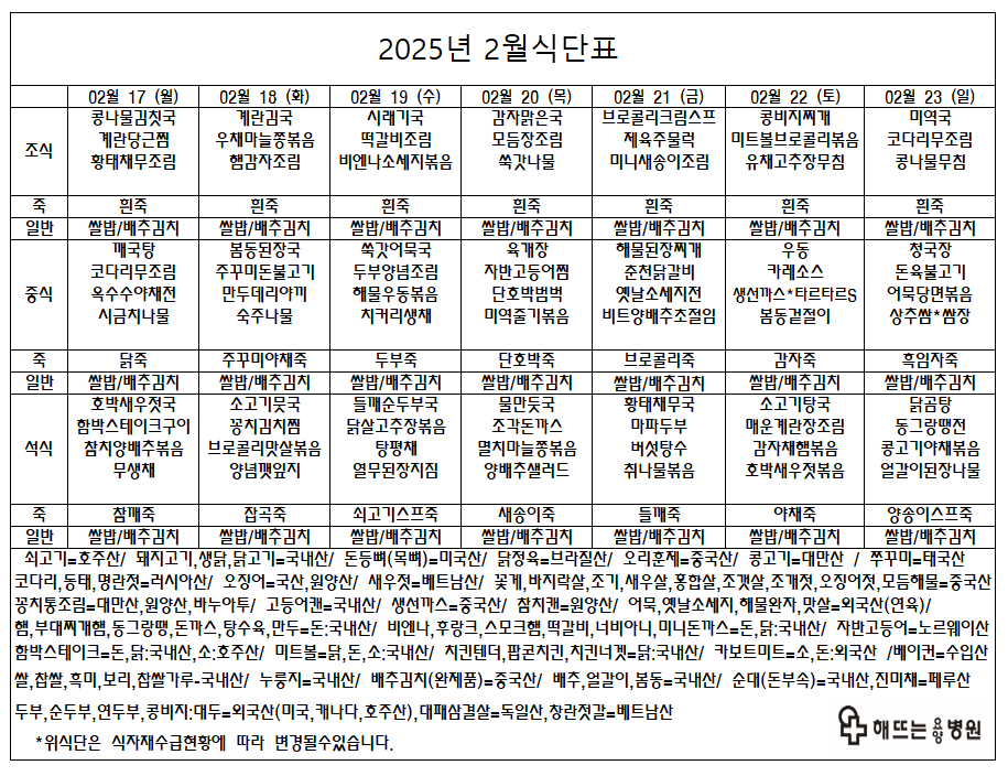 "매일 해뜨는 요양병원에서 제공되는 식단입니다"