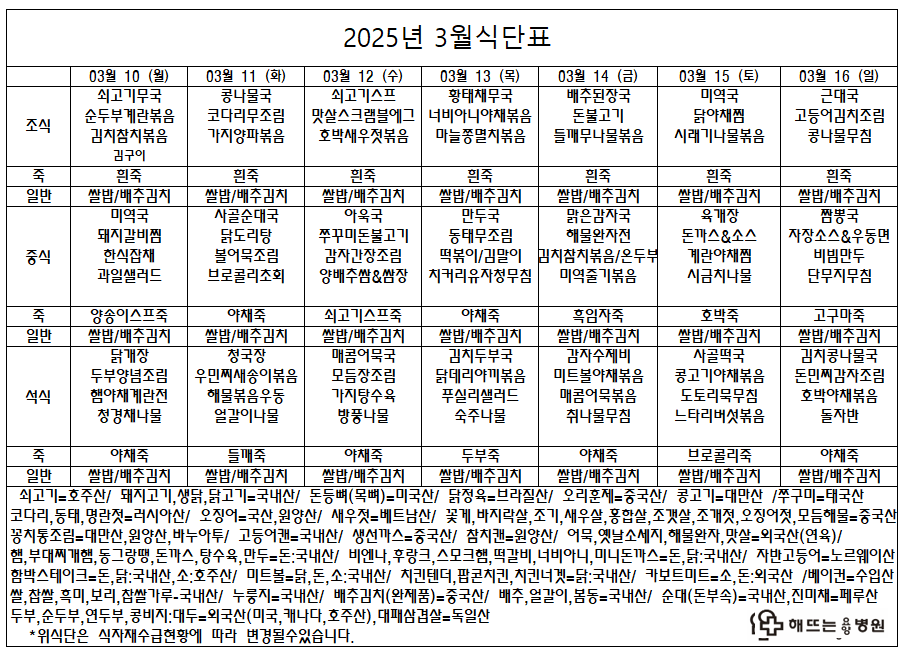 "매일 해뜨는 요양병원에서 제공되는 식단입니다"