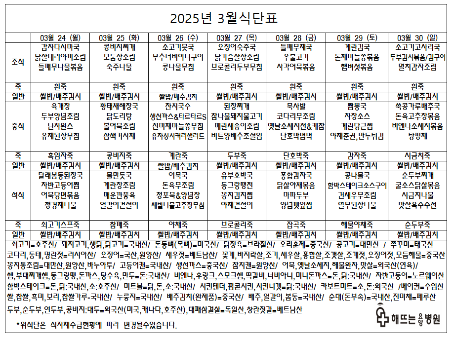 "매일 해뜨는 요양병원에서 제공되는 식단입니다"
